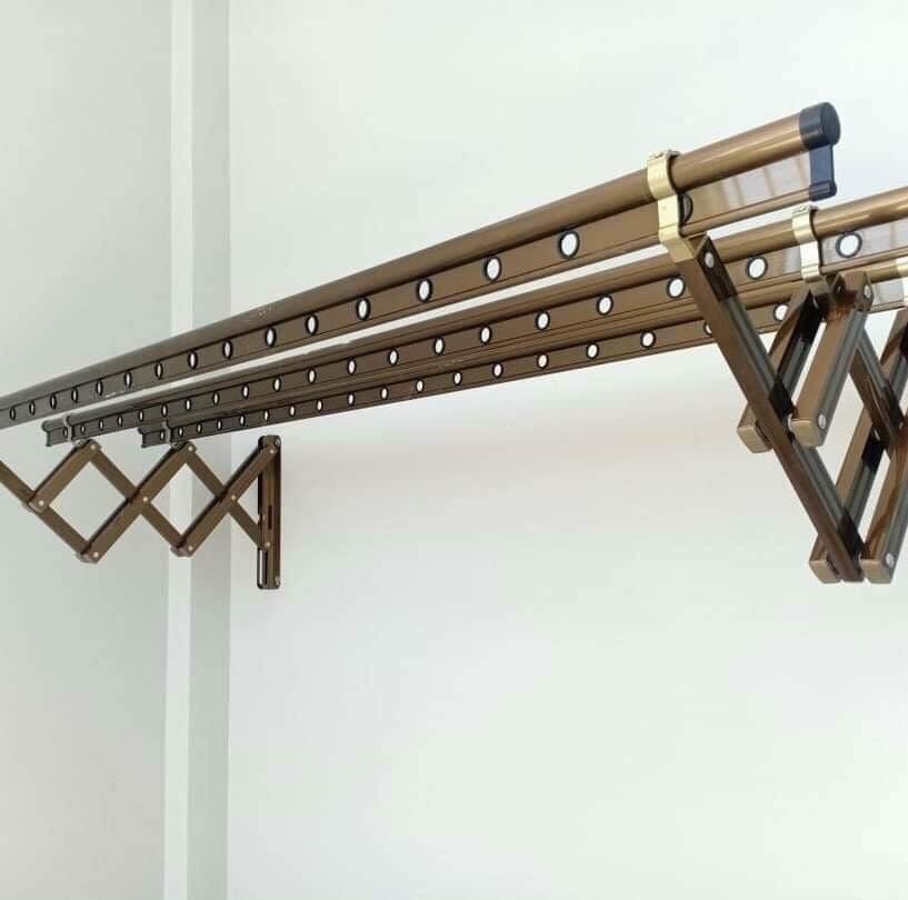 Sản phẩm giàn phơi quần áo kéo ngang hợp kim nhôm. Miễn phí vận chuyển và lắp đặt . Giàn phơi thông minh gắn tường kéo ngang là sản phẩm dành cho những hộ gia đình không có diện tích lắp đặt giàn phơi trên trần ban công giàn phơi thông minh kéo ngang là sản phẩm tối ưu cho những hộ gia đình có diện tích nhỏ Sản phẩm xếp ngang này rất dễ ràng đua ra ,thu vào mà không chiếm nhiều diện tích Một bộ giàn phơi kéo ngang bao gồm 2 hoặc 3 cơ cấu và 3 thanh phơi nhôm đúc nguyên khối siêu bền, trên mỗi thanh có 10 lổ dập sẳn trên/ 1 thanh